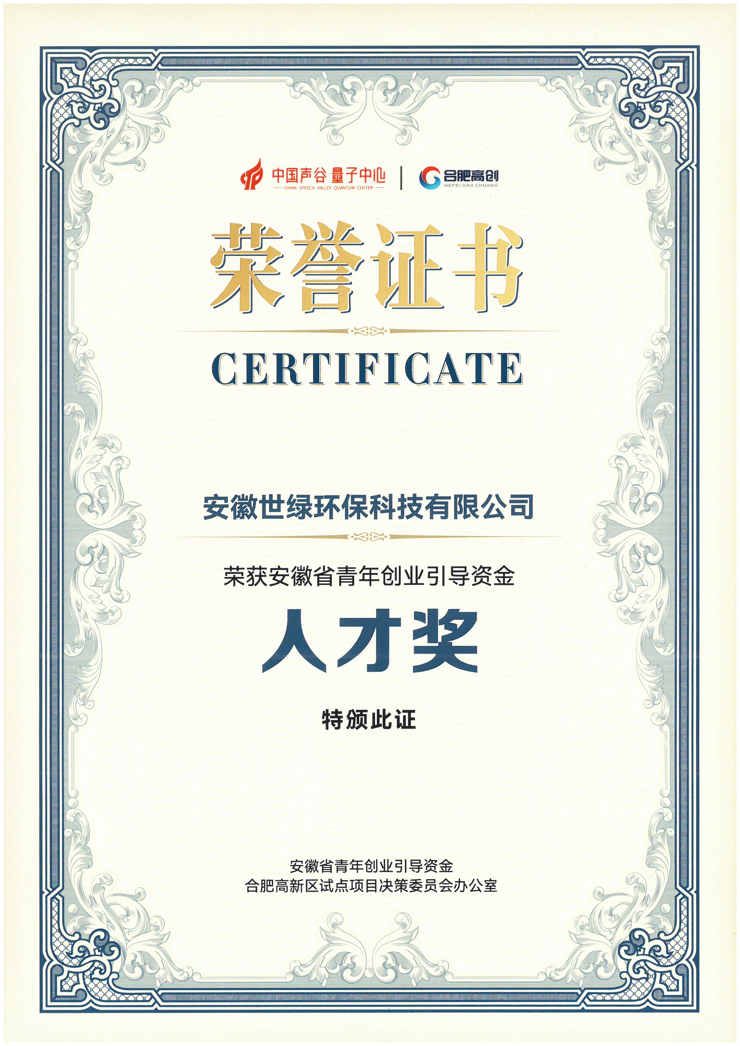 世綠環(huán)保榮獲安徽省青年創(chuàng)業(yè)引導(dǎo)資金人才獎(jiǎng)